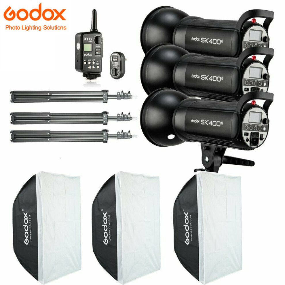 Godox 3x Godox SK400II 400Ws Studio Flash Strobe Light+Trigger+Softbox Kit 1Godox 3x Godox SK400II 400Ws Studio Flash Strobe Light+Trigger+Softbox Kit 2Godox 3x Godox SK400II 400Ws Studio Flash Strobe Light+Trigger+Softbox Kit