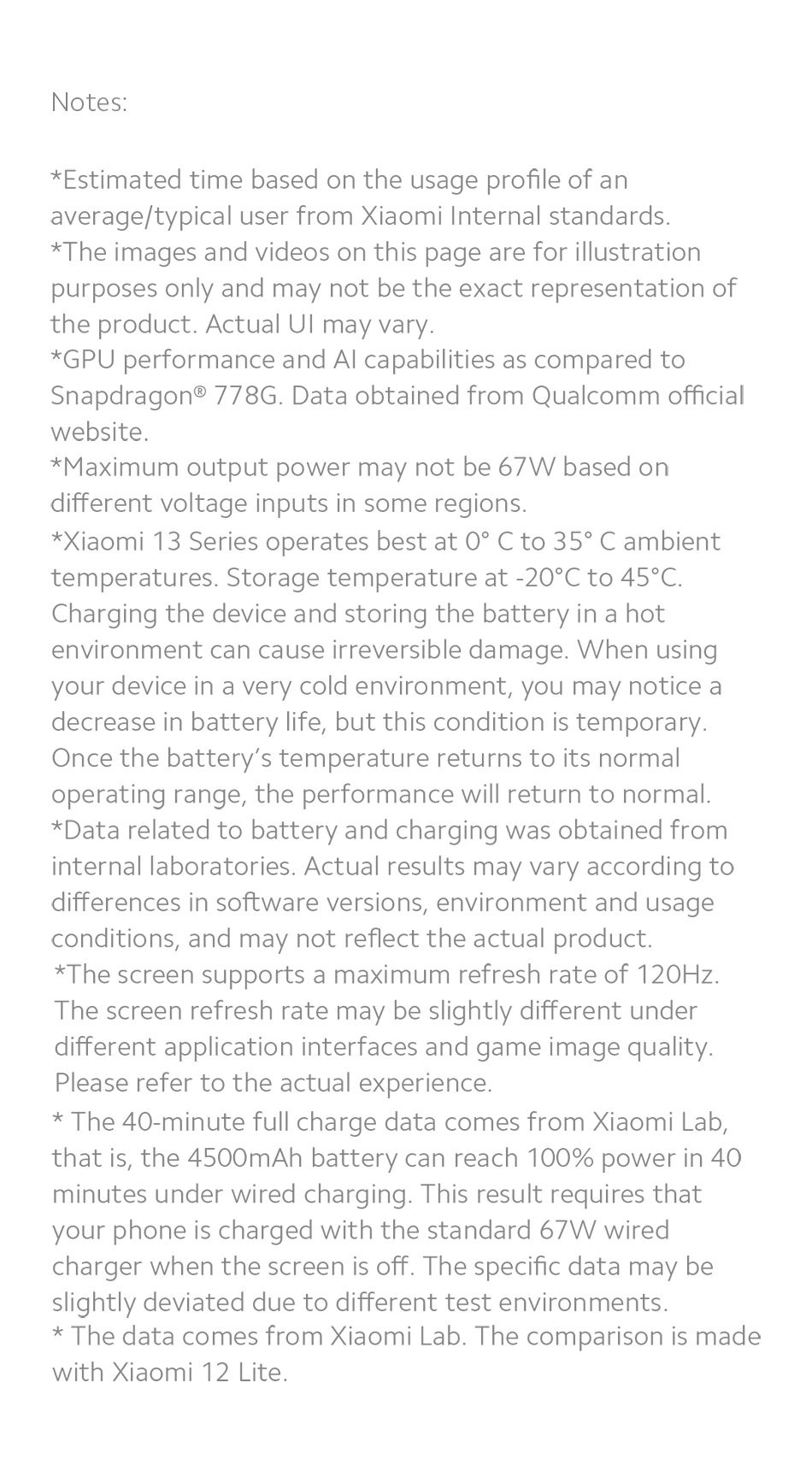 小米13Lite 5G智能手机/256GB ROM+8GB RAM/全球版